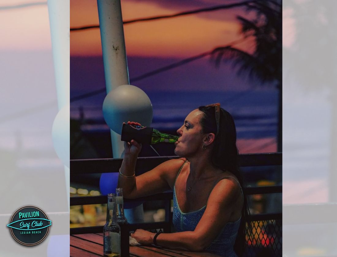 Places like Pavilion Surf Club sit directly on the sand, not above it. That makes a difference. The ocean is in front of you, not below you.