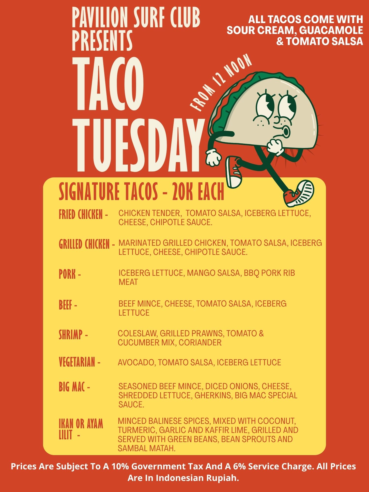 Join us every Tuesday for one of our most loved weekly specials—Taco Tuesday! Choose from 9 delicious taco flavours, each just 20K, making it the perfect excuse to mix, match, and try them all.